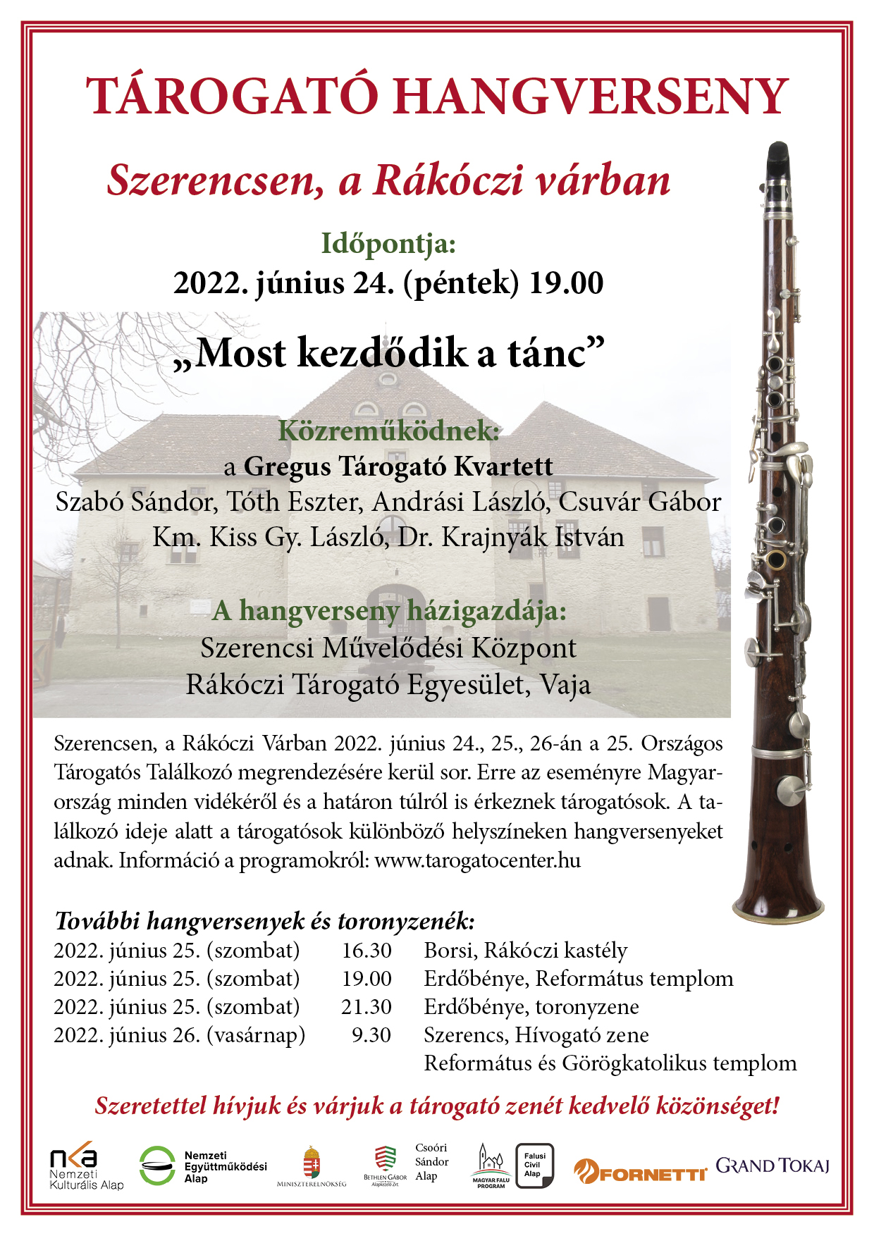 Újra a szerencsi Rákóczi-várban találkoznak a különleges történelmi hangszer, a tárogató mesterei 2022. június 24-26. között.