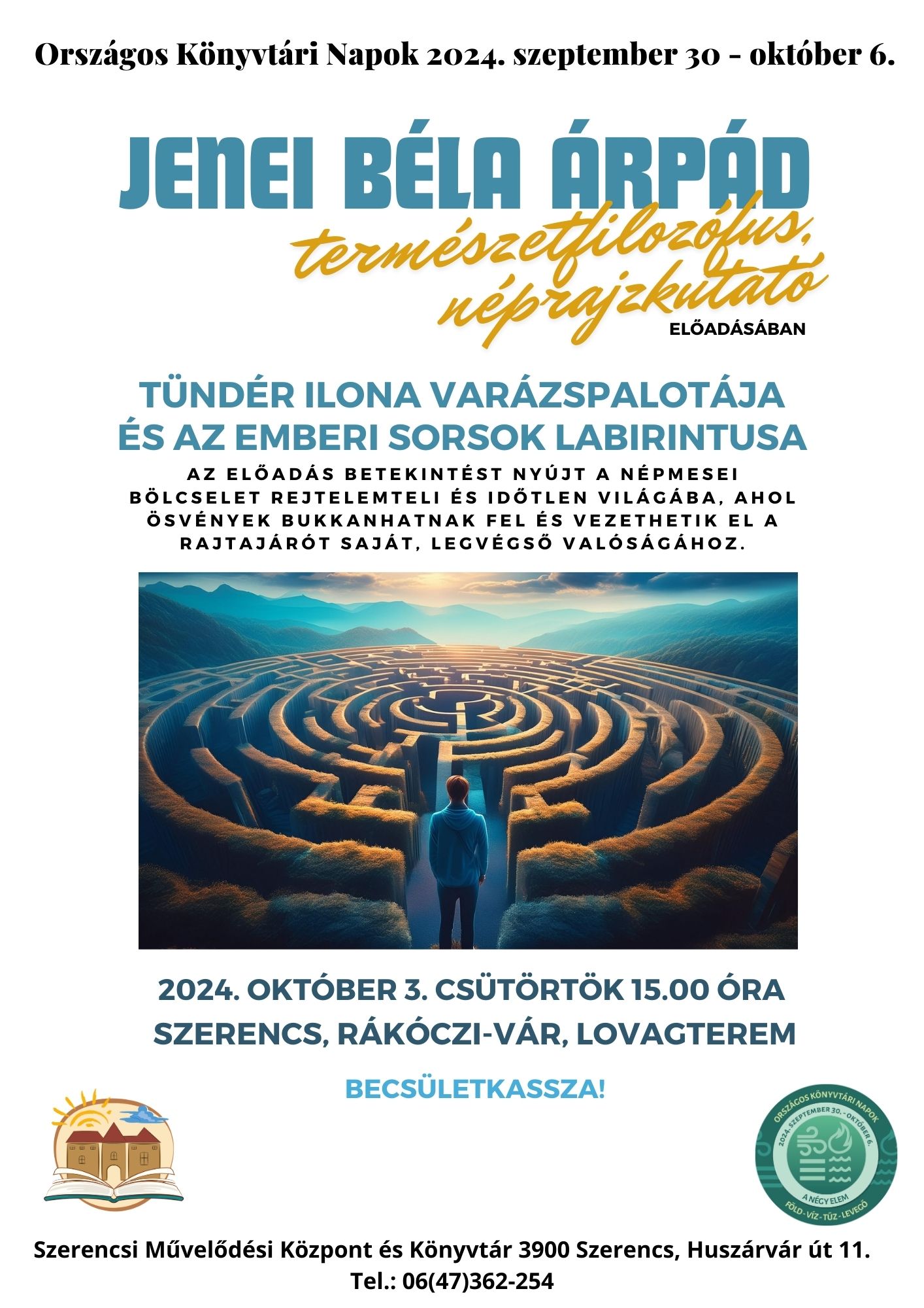 Jenei Béla Árpád természetfilozófus tart előadást 2024. október 3-án 15.00 órától a Rákóczi-vár Lovagtermében.