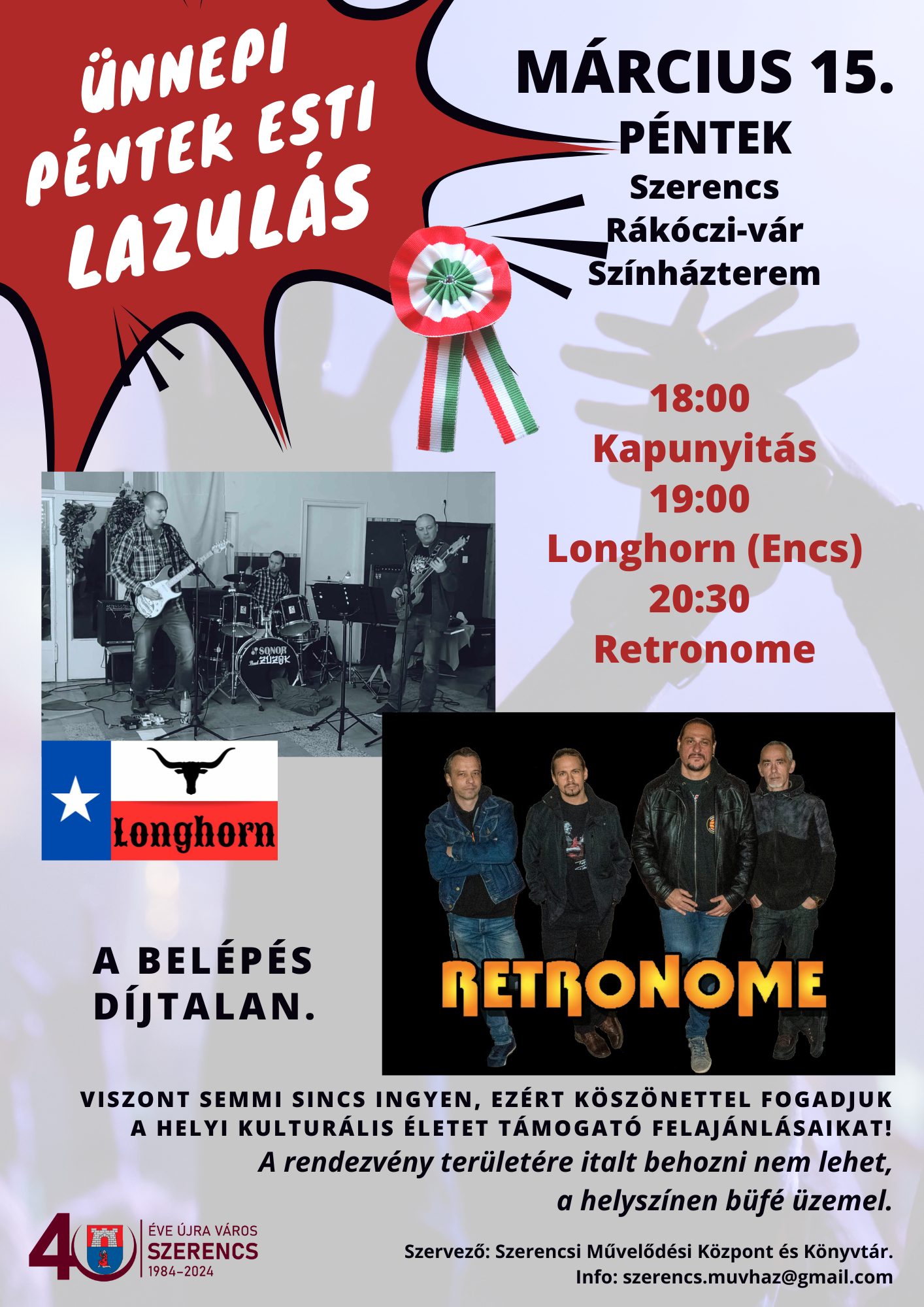 Két szerencsi kötődéssel is rendelkező blues-rock zenekar lép fel 2024. március 15-én este a szerencsi vár színháztermében.