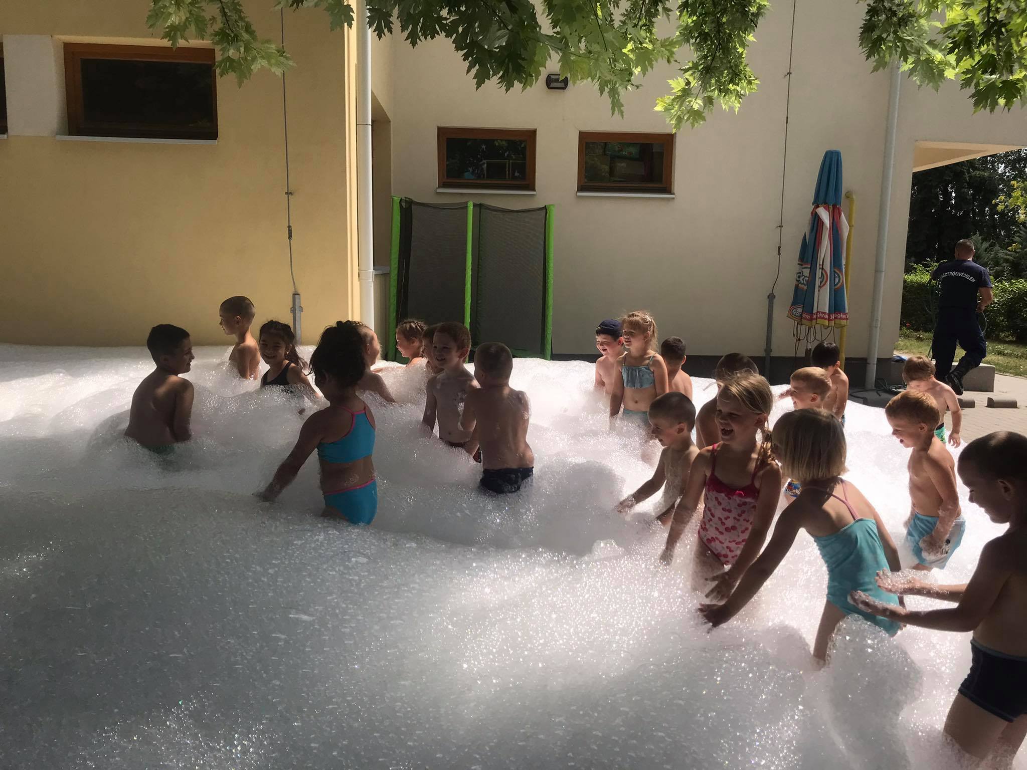 A Szerencsi Óvoda és Bölcsőde Napsugár épületében is örömmel fogadták a gyermekek a szerencsi tűzoltókat. Boldogan vetették bele magukat a hűsítő habokba. Önfeledten, vidáman játszottak, ugráltak. Mindenkinek maradandó élmény volt ez a délelőtt.