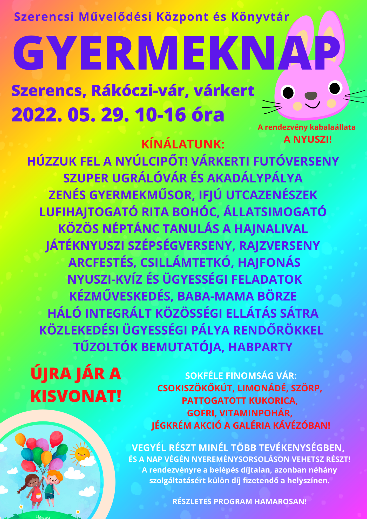 Változatos programokkal várják a gyerekeket 2022. május 29-én, vasárnap 10-16 óra között a szerencsi Rákóczi-várban tartandó gyermeknapon.