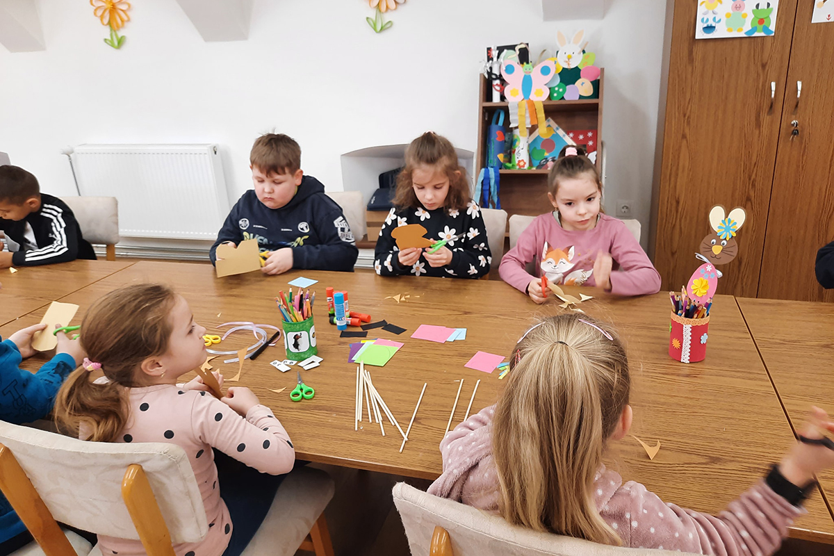 A Bolyai János Katolikus Általános Iskola elsősei Visóczki Zsanett tanító néni kíséretében látogattak el hozzánk 2024. március 25-én délelőtt. Témánk a húsvéti készülődés volt, szó esett a szokásokról, régi hagyományokról és az elmaradhatatlan közös alkotás eredményeképpen húsvéti nyuszit és tojást alkottunk papírból.