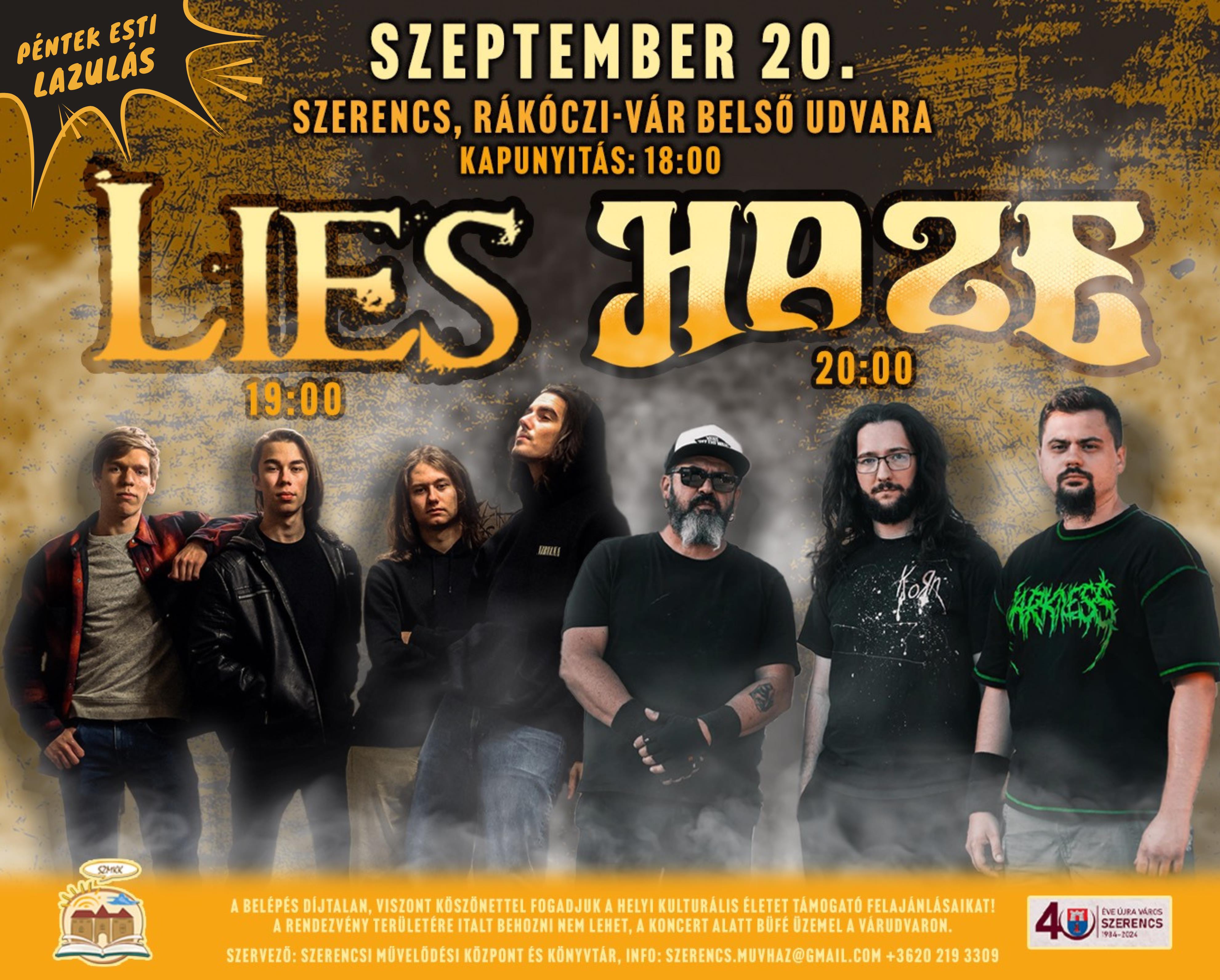 A „Péntek esti lazulás” következő koncertje 2024. szeptember 20-án, pénteken este a Rákóczi-vár udvarán. Fellép a HAZE és a LIES zenekar.