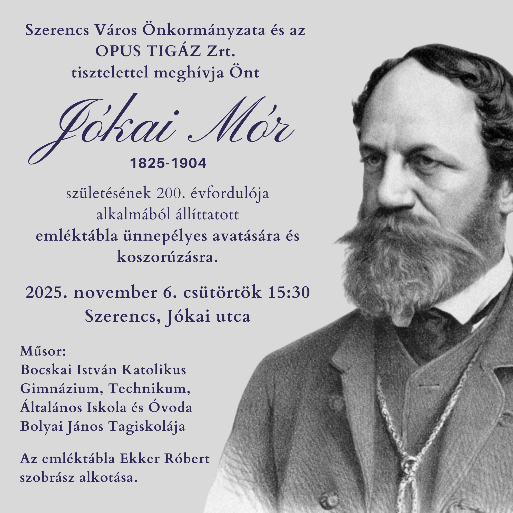 2025. november 6-án, csütörtökön 15:30 órára Szerencsen a Jókai utcában.