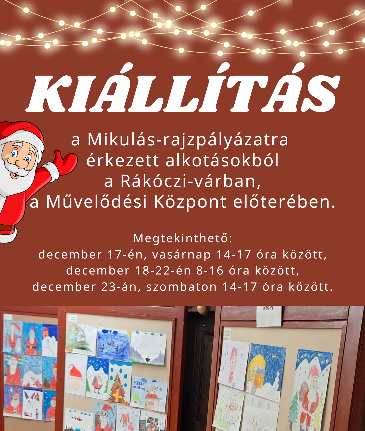 December 17-től 23-ig tekinthető meg az a kiállítás, amely a Mikulás-rajzpályázatra érkezett alkotásokból készült a Szerencsi Művelődési Központban.