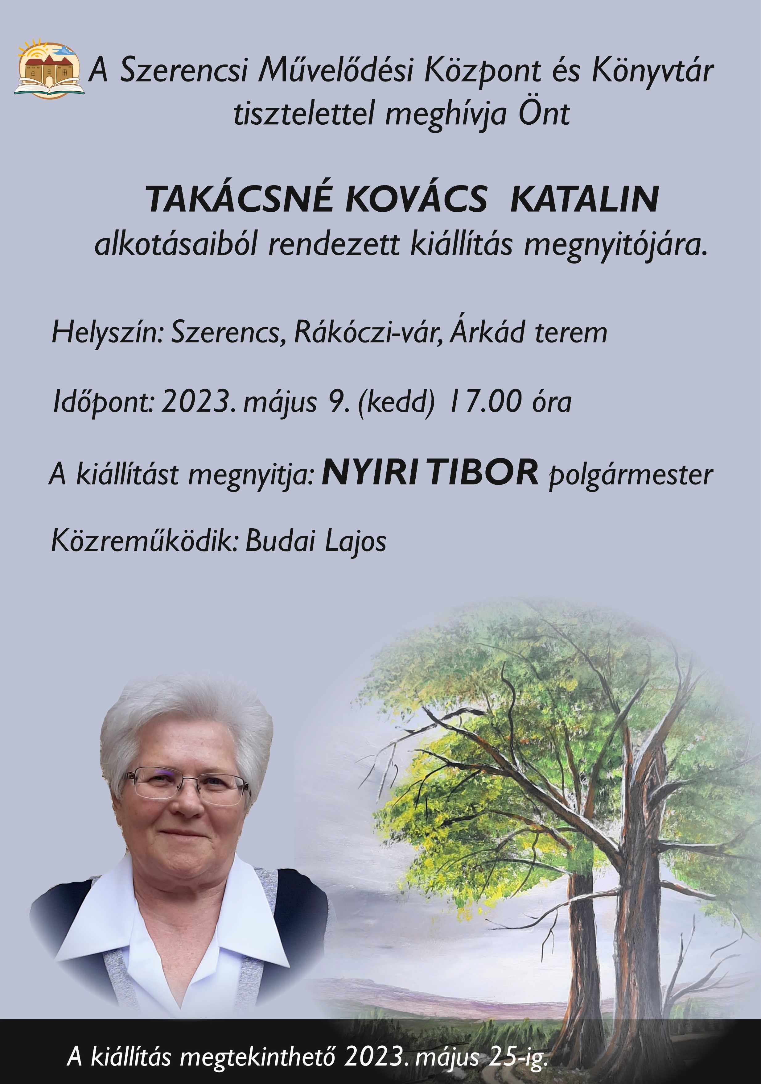 A Szerencsi Művelődési Központ és Könyvtár mindenkit szeretettel vár Takácsné Kovács Katalin kiállításának megnyitójára 2023. május 9-én, kedden 17 órától a Rákóczi-vár Árkád termébe.