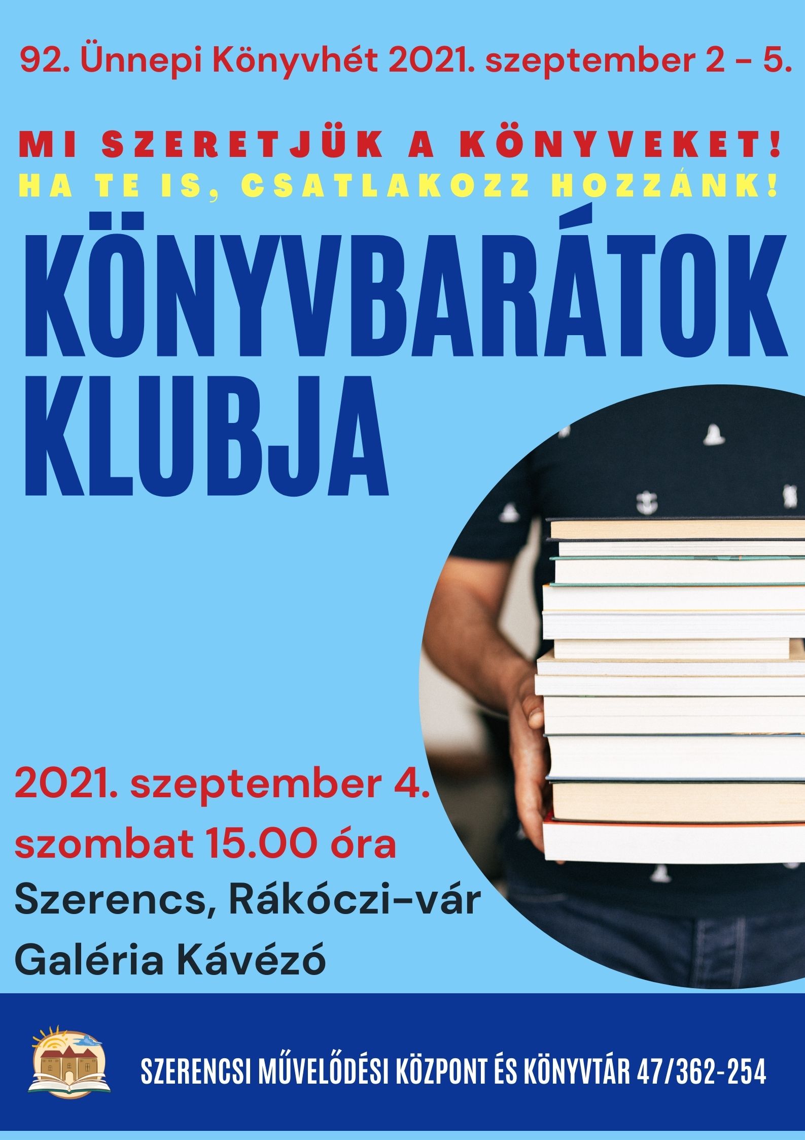 Ismét összehívja a könyvbarátokat a városi könyvtár. Találkozó 2021. szeptember 4-én, szombaton 15 órától a Galéria Kávézóban.