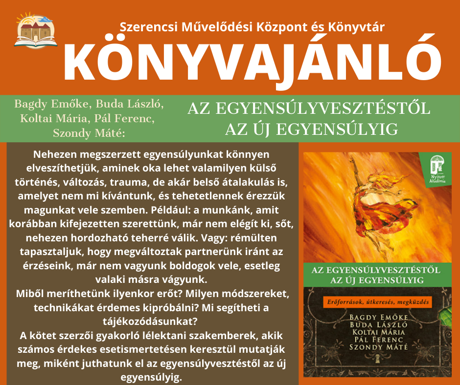 A városi könyvtár heti ajánlójában szépirodalmi és szakirodalmi könyvek közül is lehet szemezgetni. Reméljük, hogy mindenki talál kedvére valót!