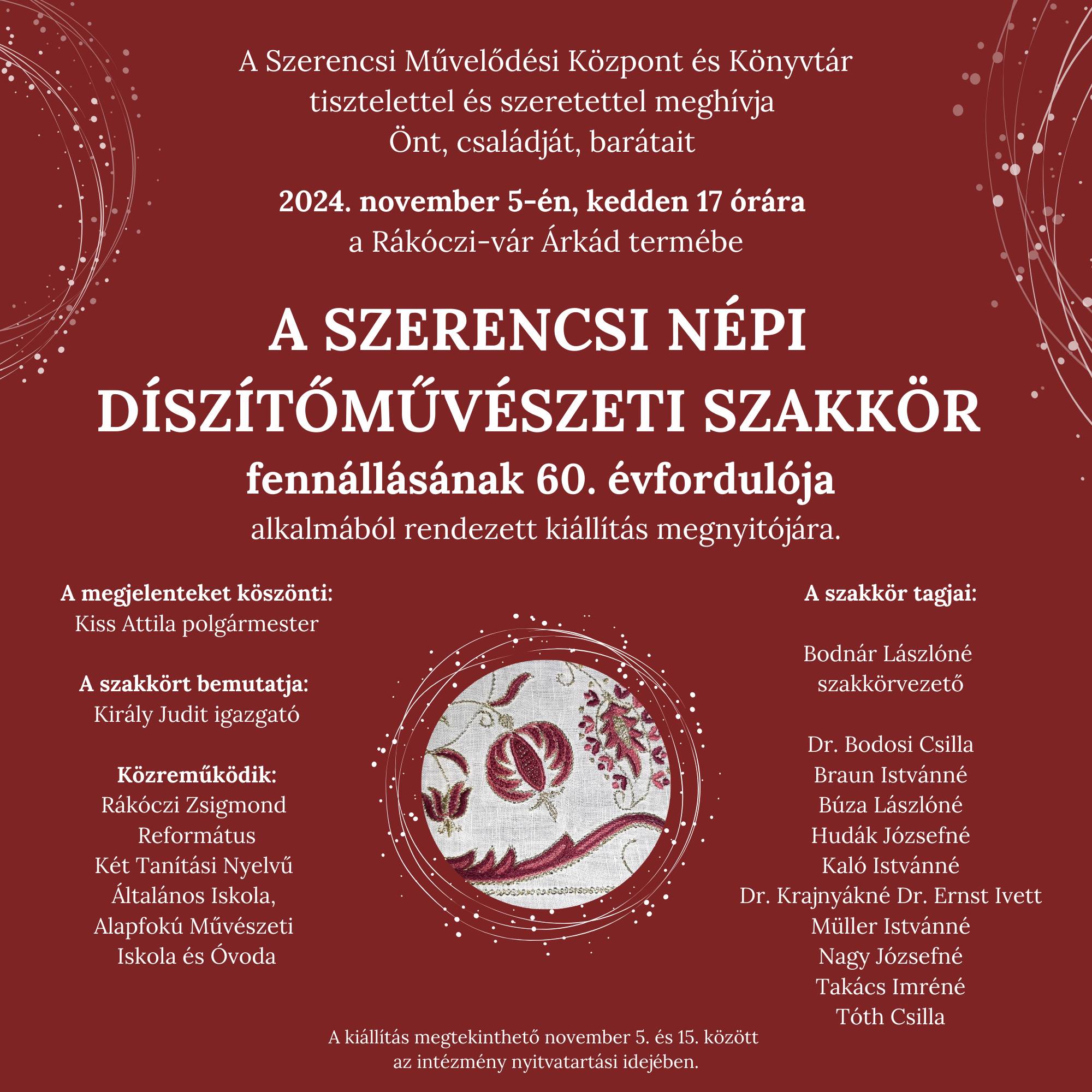 Meghívó a Szerencsi Népi Díszítőművészeti Szakkör jubileumi kiállítására