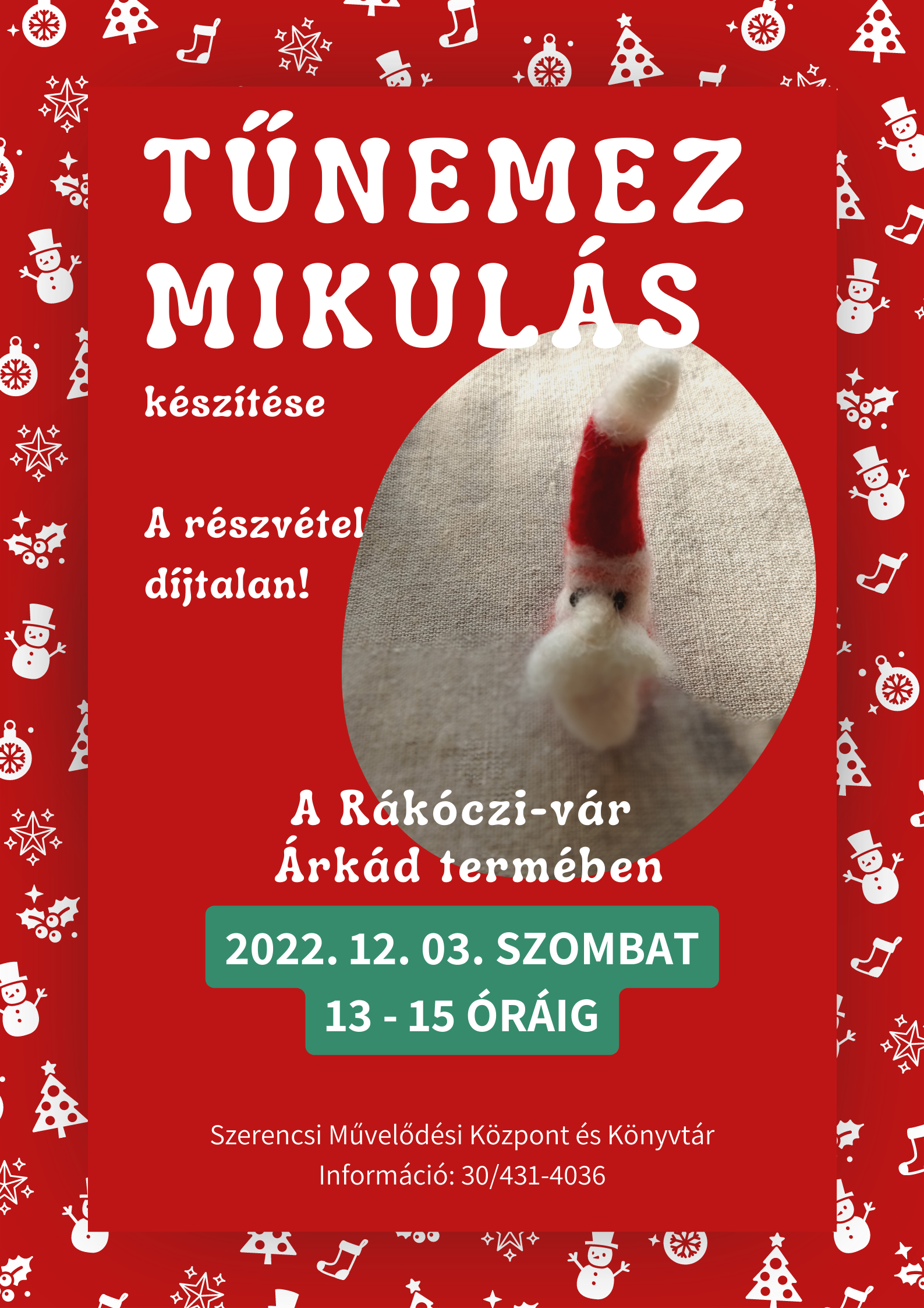 Kóra Judit népi kézműves nemezkészítő vezetésével a tűnemez rejtelmeivel ismerkedhetnek meg az érdeklődők 2022. december 3-án, szombaton 13 órától a Rákóczi-vár Árkád termében. A foglalkozás eredménye egy aranyos nemez mikulás lesz!