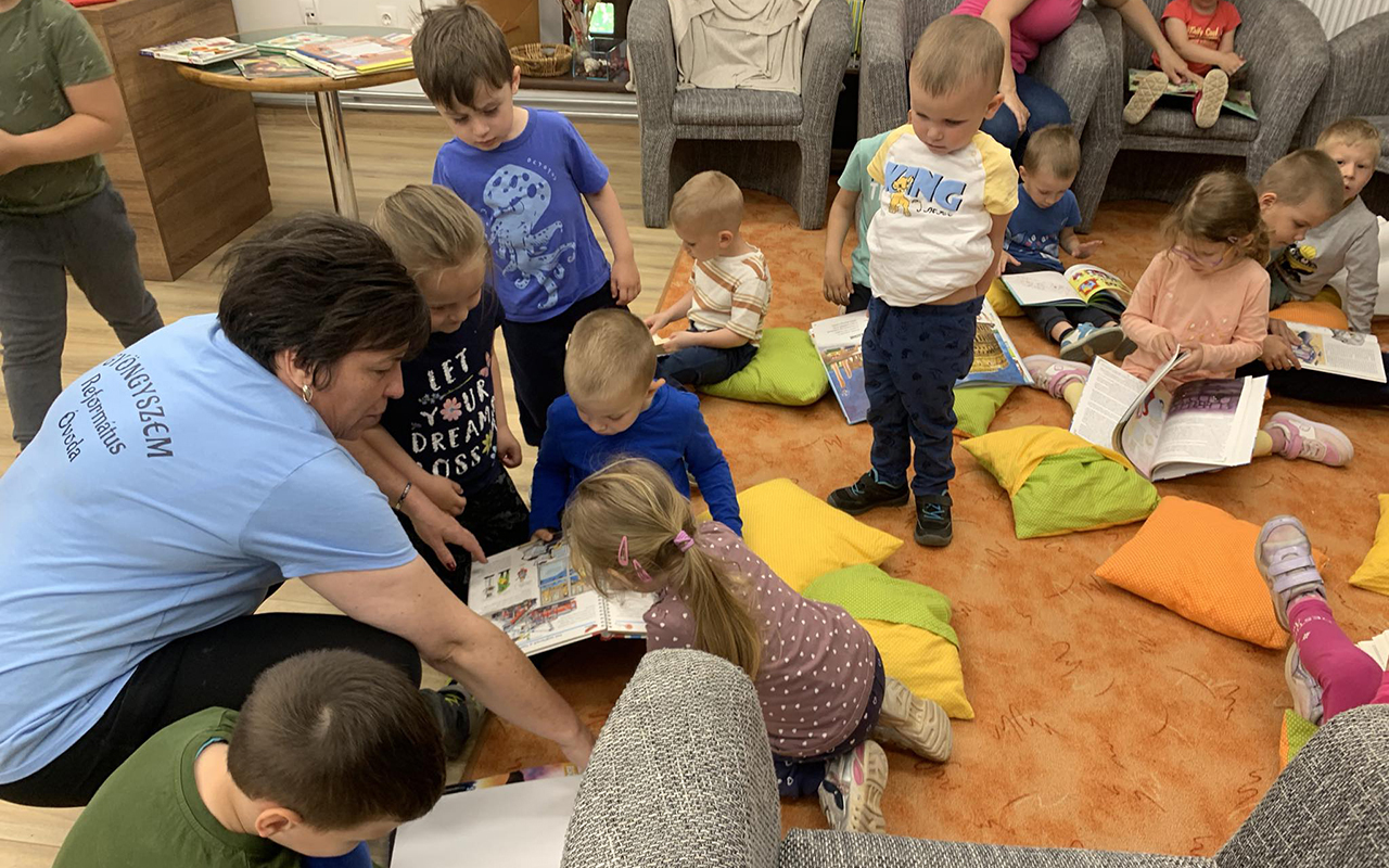 Lelkes, érdeklődő apróságok látogattak el 2024. május 9-én a gyermekkönyvtárba, hogy megismerkedjenek a könyvekkel, a könyvtár hangulatával. Az ovisok birtokba vették az olvasó sarkot, megtanultuk, hogyan kell lapozgatni egy könyvet, aztán mindenki kedvére keresgélhetett. A játékok is lekerültek a polcokról, hiszen minden kisgyerek szeret játszani, s ezt a gyermekkönyvtárba látogatók is jól tudják. Végül diafilmen mesét is olvastunk a Madarak és fák napja alkalmából. Köszönjük szépen a Gyöngyszem Református Óvodának, hogy segítségünkre vannak az olvasás népszerűsítésében! Várunk vissza Titeket máskor is!