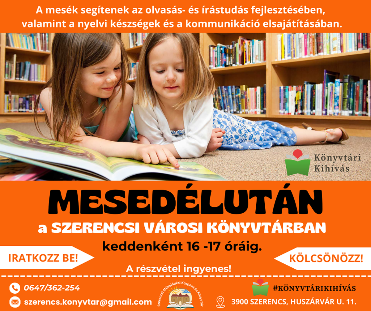 A Szerencsi Városi Könyvtár elhivatott az olvasás és a könyvtár népszerűsítésében, ezért minden kedden délután 16-17 óra között mesedélutánt tartunk. Bárkit szívesen látunk, aki szeretne részt venni egy kellemes időtöltésben, ami ráadásul hasznos is.