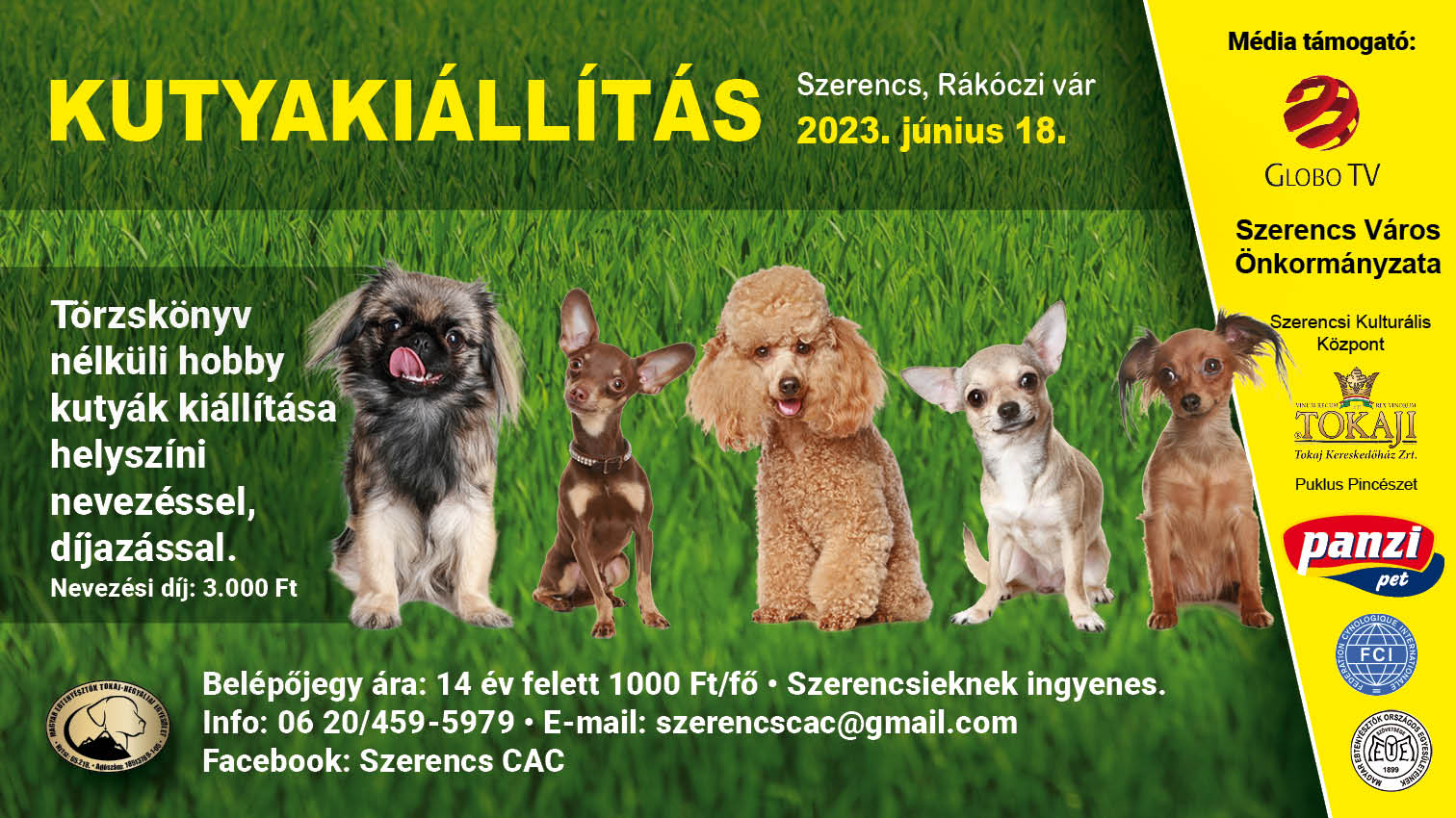 A korábbi években már nagy sikerrel rendeztek Szerencsen nemzeti kutyakiállítást. 2023. június 18-án ismét a szerencsi vár és várkert ad helyet az ebek megmérettetésének. A „profik” mellett a törzskönyv nélküli hobby kutyák is versenyezhetnek. Kezdés 10 óráról.