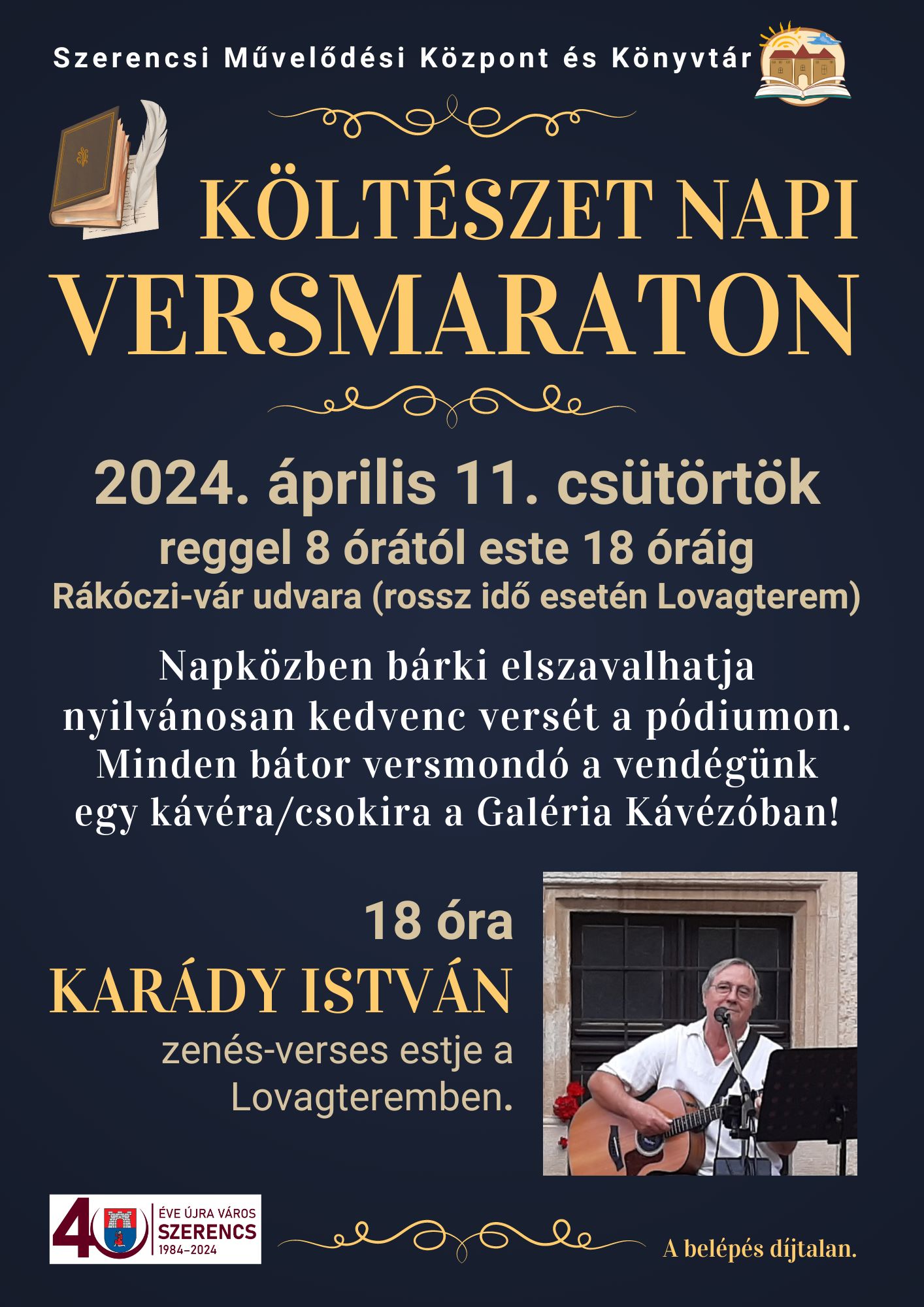 A Szerencsi Művelődési Központ és Könyvtár minden verset szerető, költészet iránt érdeklődő embert szeretettel vár 2024. április 11-én a Rákóczi-várba.