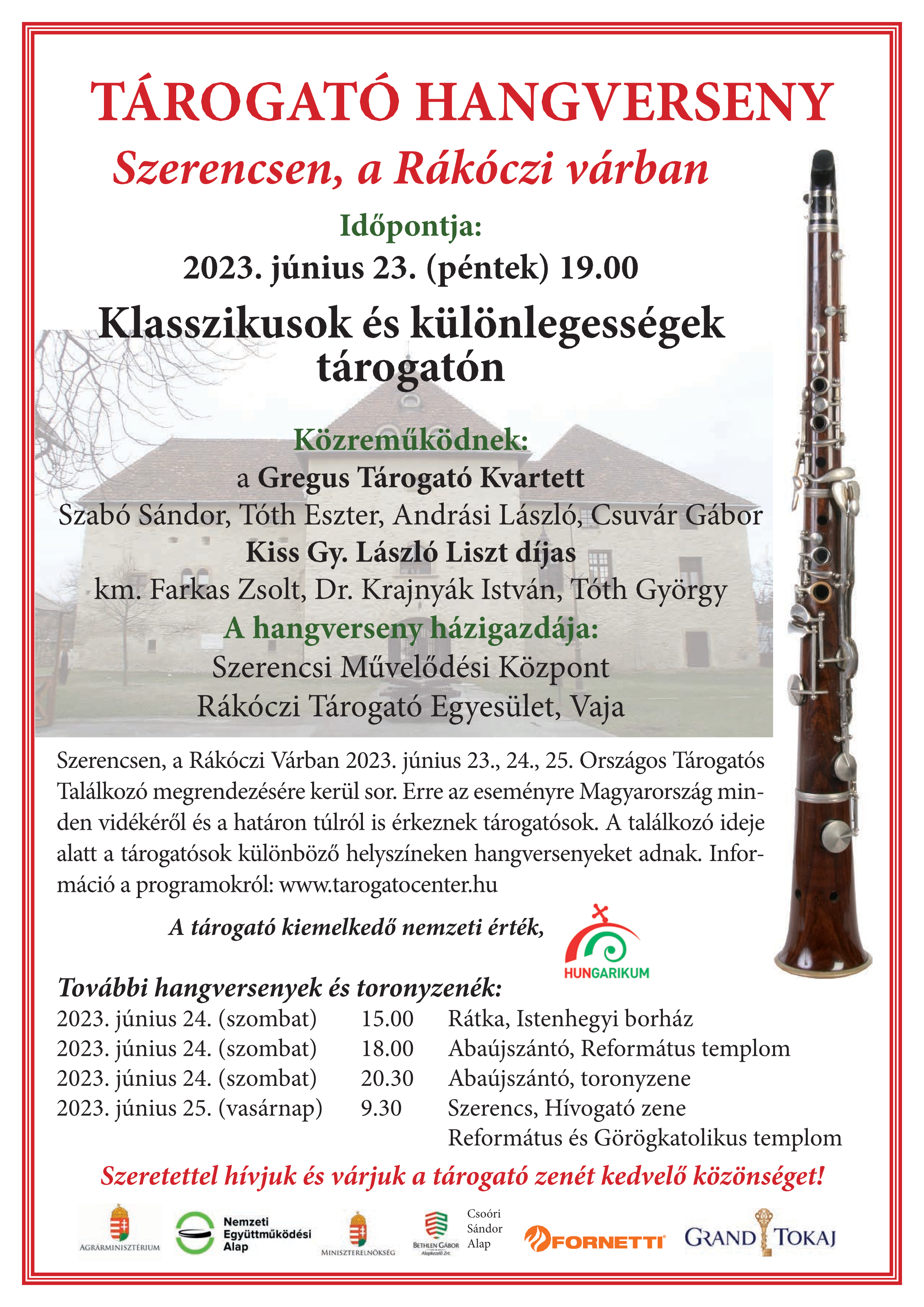 A tárogató hangszer mesterei újra Szerencsen gyűlnek össze 2023. június 23-25. között.