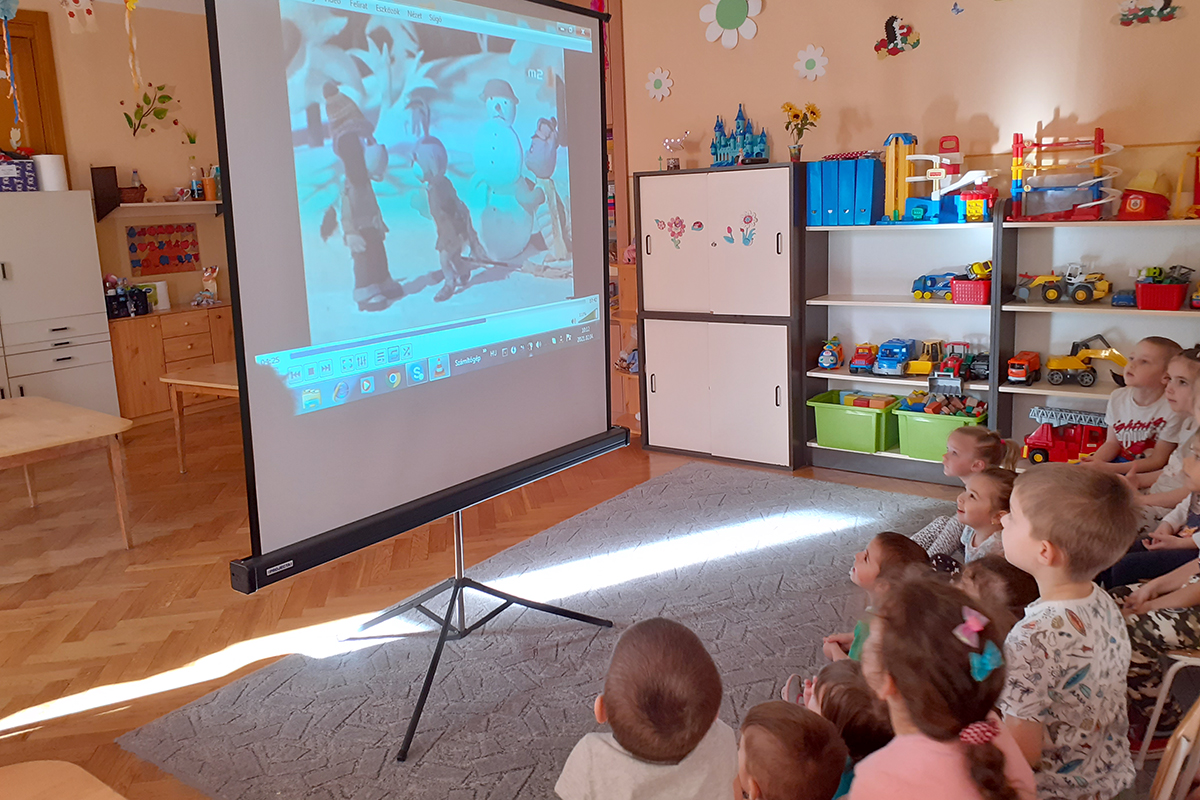 A Maci hét 4. napján mese délelőtt volt a Katica csoportban. Füles Mackó és a hóember c. mesét örömmel fogadták a gyermekek. A kis Katicák ügyesen számoltak a macikkal, sorba rendezték őket nagyság szerint. Megszámolták, hány macilány van közöttük.