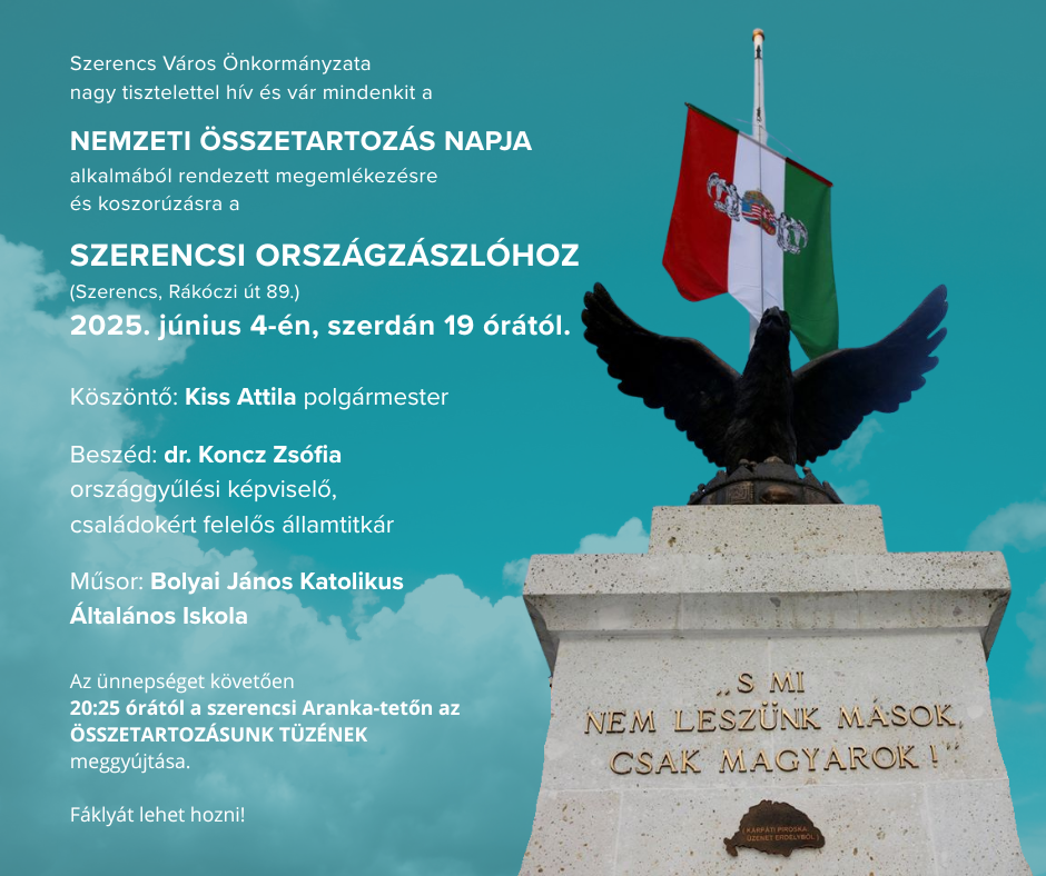 A megemlékezés után 20 óra 25 perckor a szerencsi Aranka-tetőn mindenkit szeretettel várnak az ÖSSZETARTOZÁSUNK TÜZÉNEK meggyújtására.