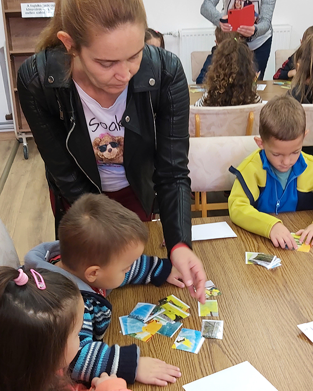 Magyar népmesét ábrázoló puzzle-t kellett kirakni, és mesehősök színezése volt a feladat.