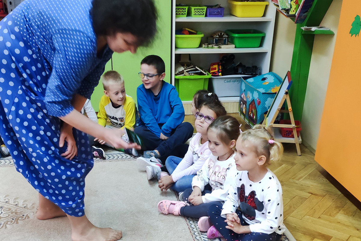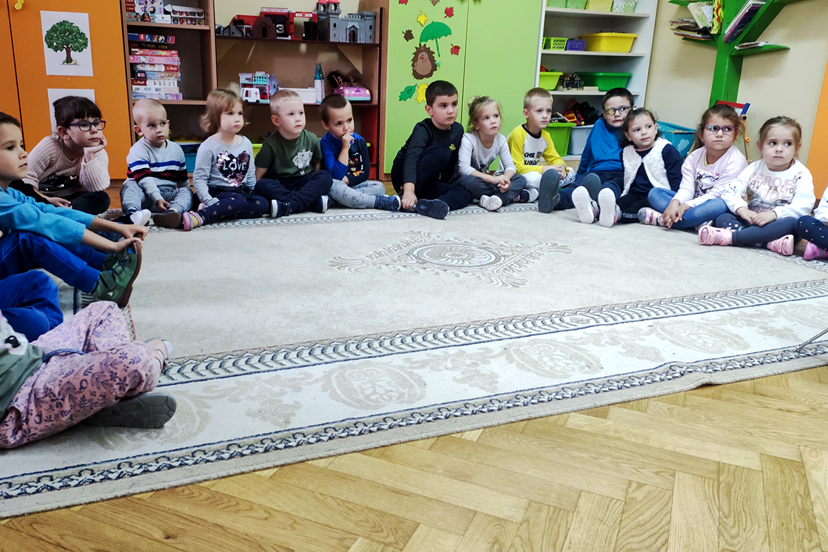 A közelgő állatok világnapjához igazodó, óvodában is ismert állatokról szóló gyermek dalokat játszott, melyet közösen énekeltek és játékos mozdulatokkal kísérték a zenét a gyermekek.