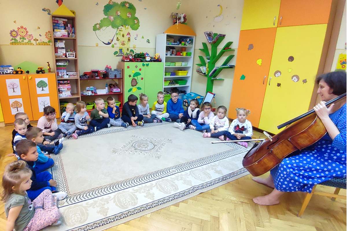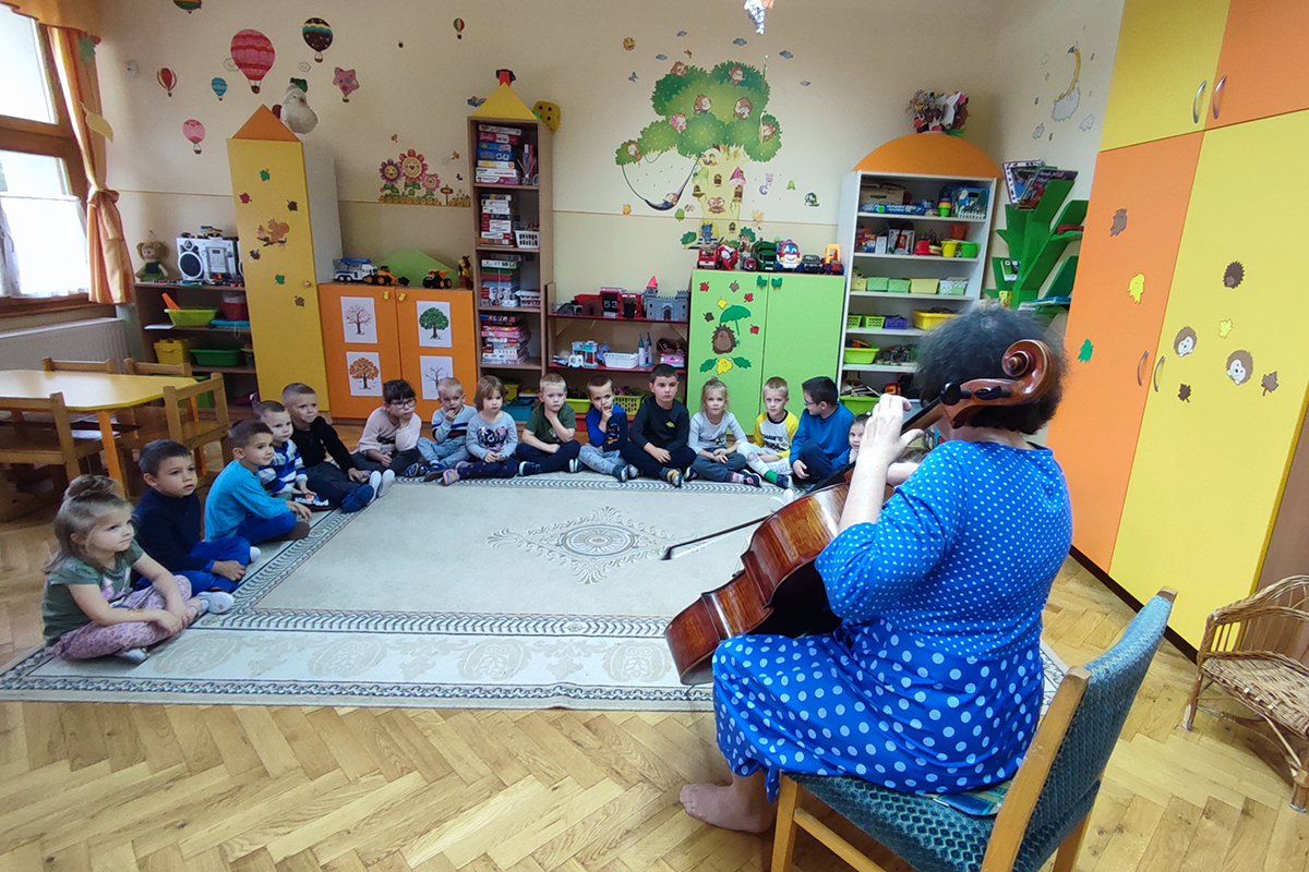 A zene világnapja alkalmából Nagy Marianna cselló tanárnő hangszer bemutatót tartott az óvodában. A magyar népmeséhez kötődő zenei aláfestéssel kezdte produkcióját.