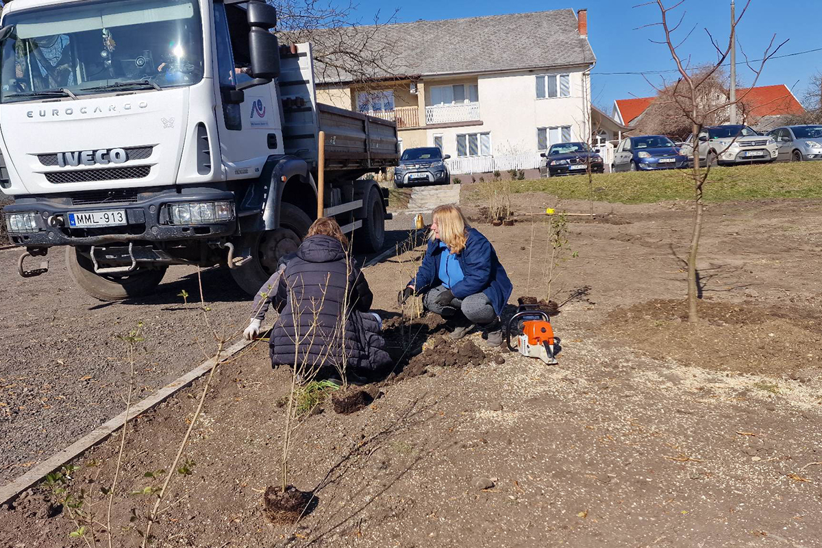 A következő hetekben még parkosítási munkálatokat fogunk végezni, a kivágott fák helyére új fasort és zajcsökkentő sövényt telepítünk.