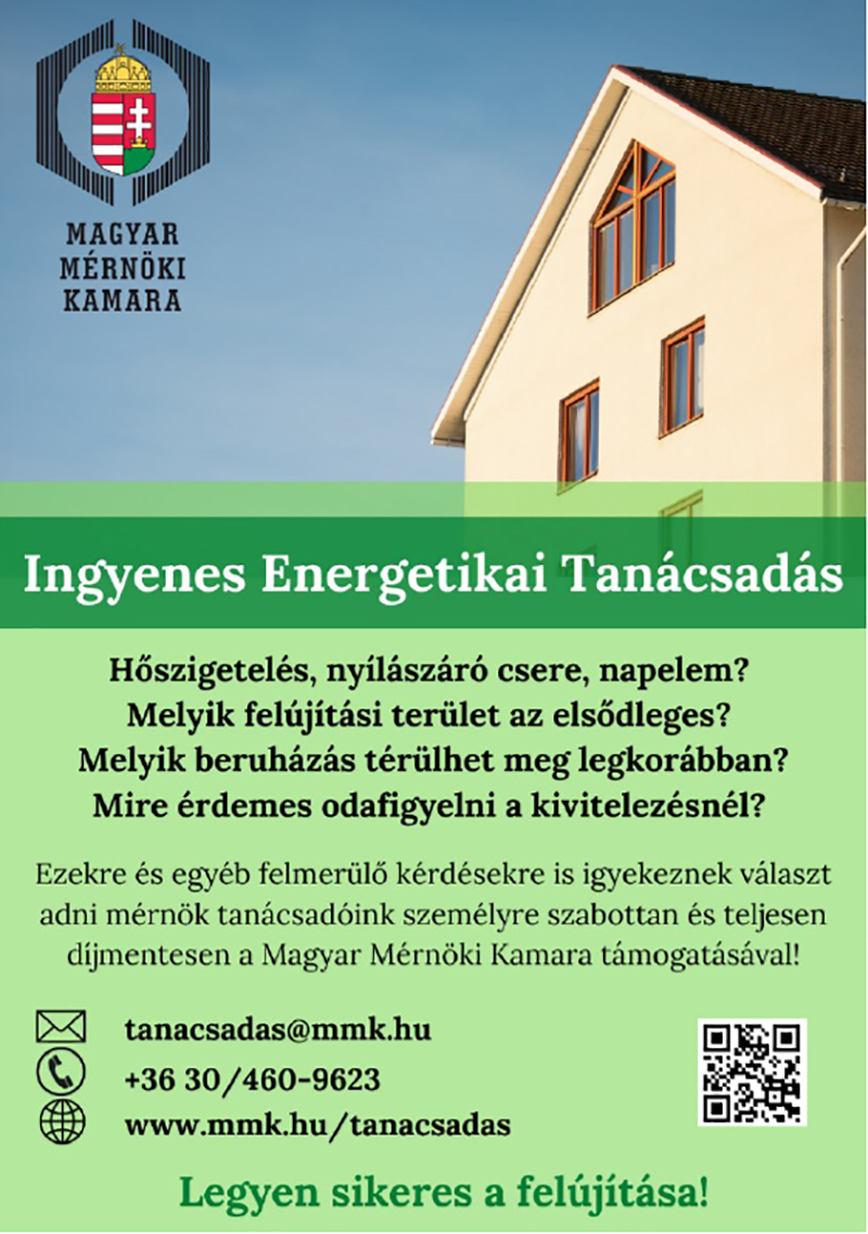 Immár több mint egy éve indult a Magyar Mérnöki Kamara ingyenesen igénybe vehető energetikai tanácsadói szolgáltatása. Ez idő alatt közel 350 ügyfélnek tudtak segítséget nyújtani, köztük számos vállalkozásnak. A kezdeti szakértő mérnöki kör kibővítésével ma már minden megyében biztosított a tanácsadás gyors és közvetlen elérése.
