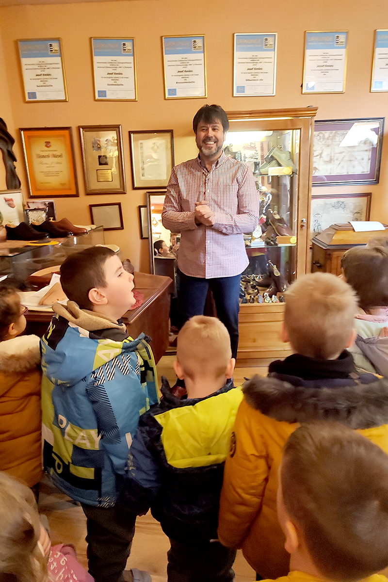 A cipő készítés folyamataiba nyerhettünk betekintést. A látogatás alkalmával érzékenyítő területre is felfigyelhettek a gyermekek, mivel gyógyászati igényekhez igazodva is vállal Kovács Attila mestercipész lábbeli készítést.
