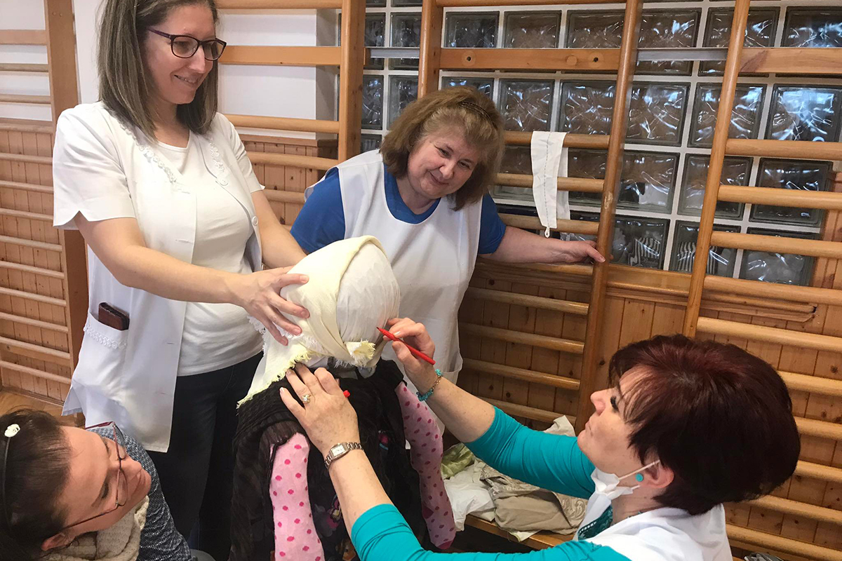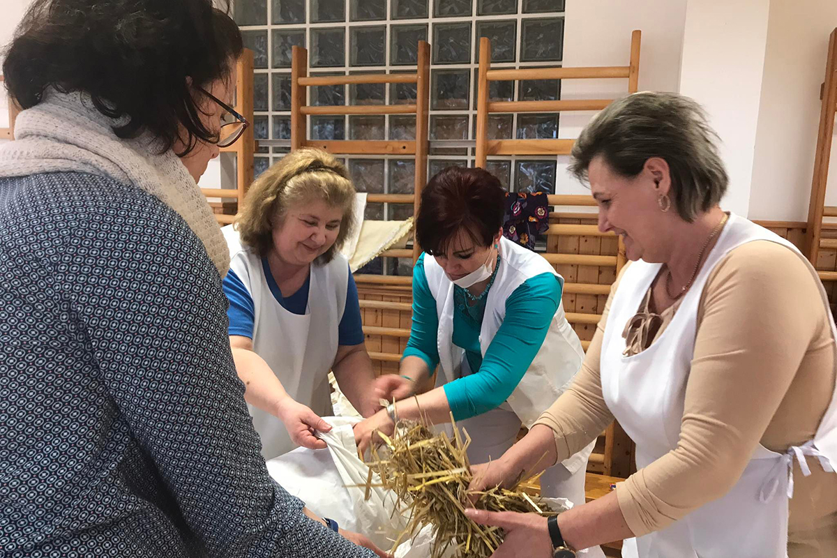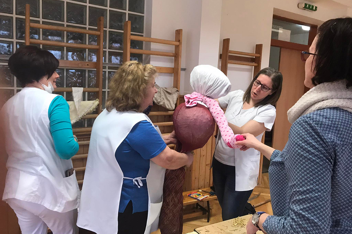 A hagyományőrző munkaközösség a téltemetéshez készített kiszebábot.