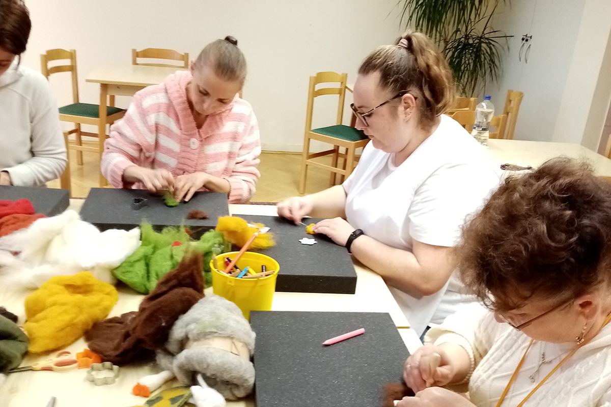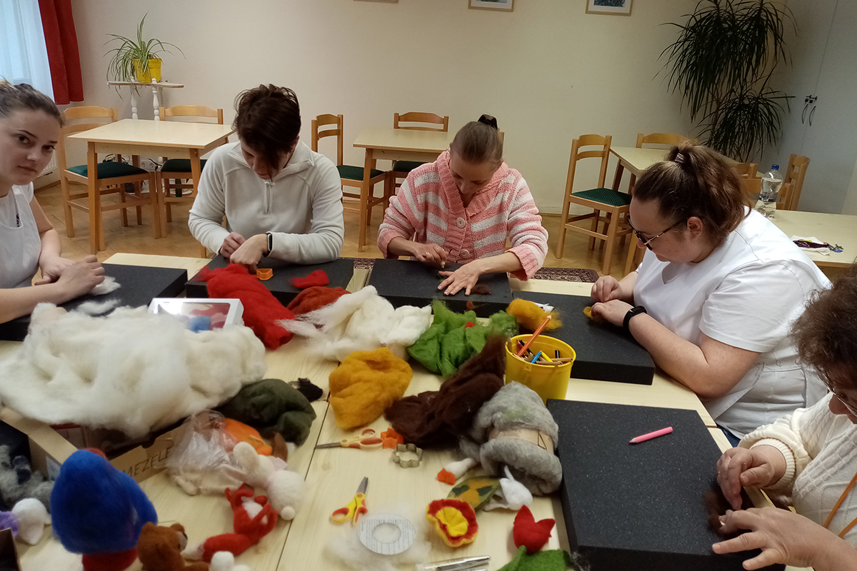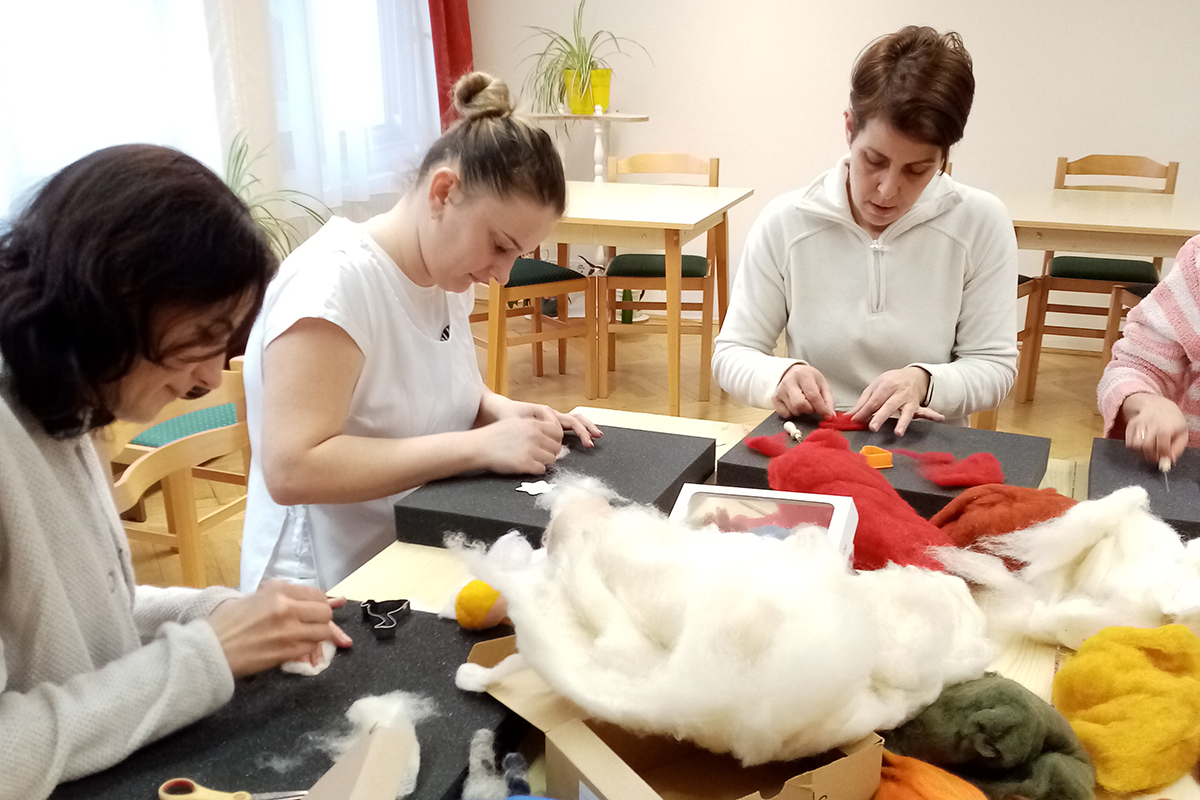 Óvodapedagógus kolléganőnk tudását megosztva ismertetett meg bennünket a tűnemezelés technikájával.