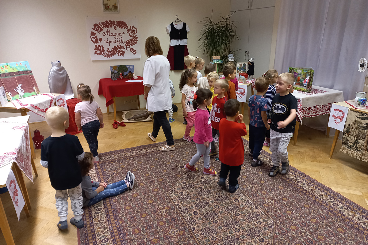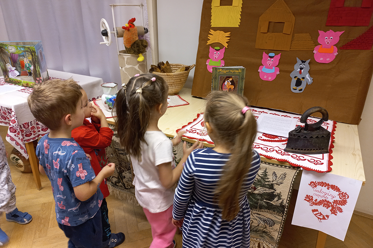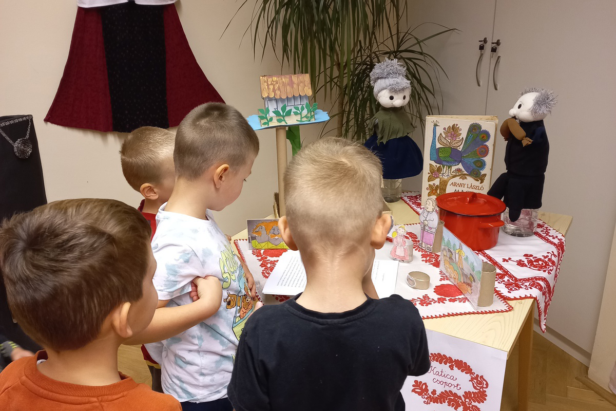 Erre az alkalomra heti programmal készült az óvoda. A könyvtár látogatást követően a mai napon az óvodában is élményszerű programokkal emlékeztünk meg a népmese napjáról. Erre az alkalomra készített kiállítás keretén belül több magyar népmeséből válogathattak a gyermekek, melyeket a csoportok óvodapedagógusai élményszerűen tártak a gyermekek elé. Örömmel tapasztaltuk, hogy a kiállított szemléltető eszközökből bábokból felismerték a meséket. Fontosnak tartjuk, hogy az óvodai életben a jeles napokról rendhagyó módon emlékezzünk meg. Ennek közösség formáló ereje van.