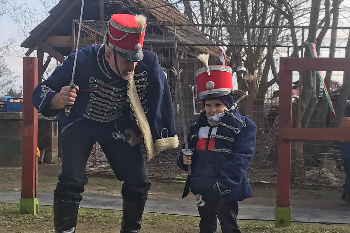Ezt követte az ünnephez köthető kellékek megismerése: mente, csákó és a hozzá tartozó kard, melyet a bátrabbak felpróbálhattak, megfoghattak.