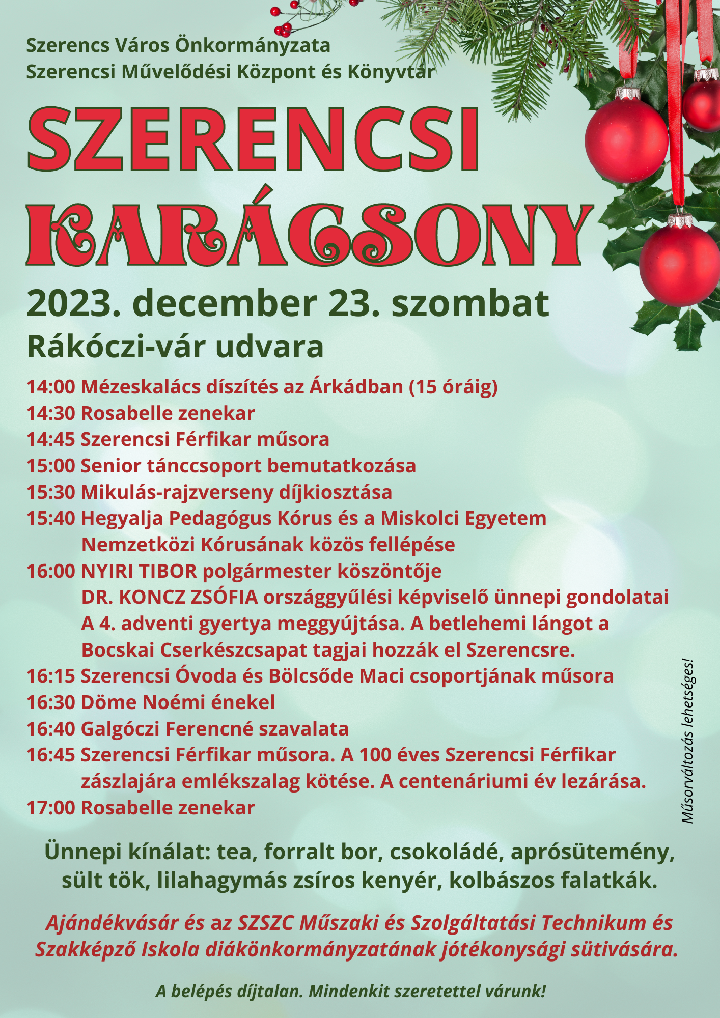 Minden érdeklődőt szeretettel várnak a Rákóczi-vár udvarán 2023. december 23-án 14 órától a városi karácsonyi ünnepségre.