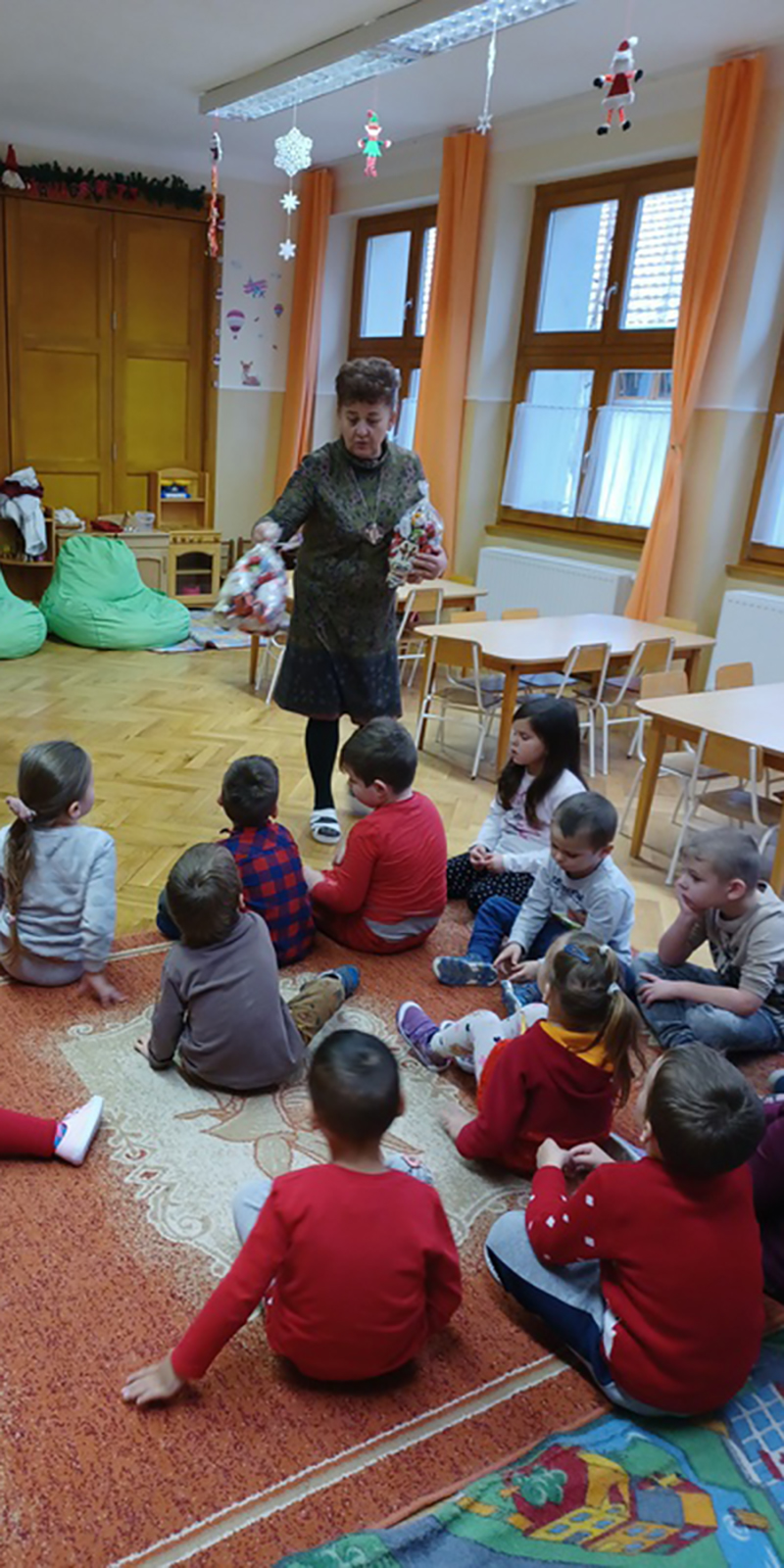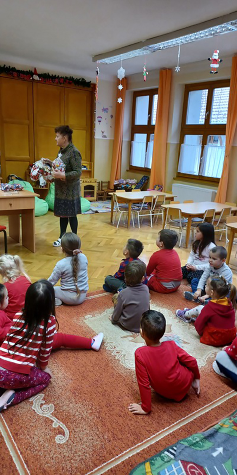Izgatottan jöttek a gyermekek az óvodába, bölcsődébe, mert a mai napon mindenki találkozhatott a Mikulással. Változatos programokkal készültünk erre a napra, zenés műsorral, versekkel, énekekkel. A csomagok kiosztását követően újabb meglepetés várta a gyermekeket, a Polgármester Úr gyermeknek, és felnőtteknek egyaránt kedveskedett egy-egy csoki mikulással. A Nestlé Gyár Igazgatónője Helene Kovalevsky Asszony 45 óriás csomaggal lepte meg az óvodásokat, bölcsődéseket, melyet a mai napon ki is osztottunk. Az ünnepet megelőzően köszönetét fejezte ki az óvodának és a bölcsődének, hogy a vírushelyzet ellenére a gyár dolgozói továbbra is hozhatták gyermekeiket intézményünkben, így a termelés folytatódhatott.