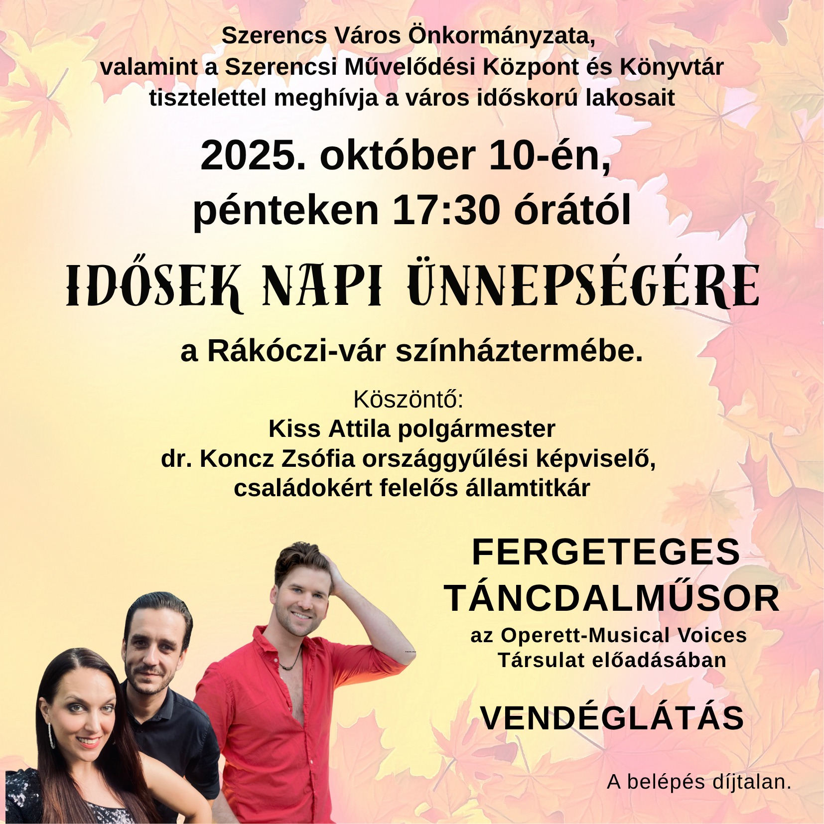 Most pénteken, az idősek napja alkalmából ünnepséggel készül a Szerencsi Művelődési Központ és Könyvtár. Ez az este az idősebb generációnak szól – egy kellemes, zenével és jó hangulattal teli kikapcsolódás –, ahol a közösség áll a középpontban. A rendezvényen az Operett–Musical Voices Társulat lép fel, akik egy szórakoztató táncdalműsorral gondoskodnak arról, hogy ez az este emlékezetes legyen.