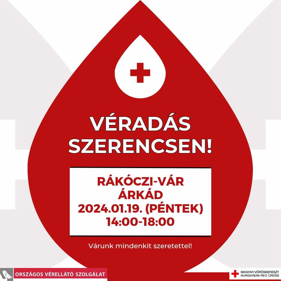 Véradást szervez a Magyar Vöröskereszt a szerencsi Rákóczi-várban 2024. január 19-én, pénteken 14 órától.