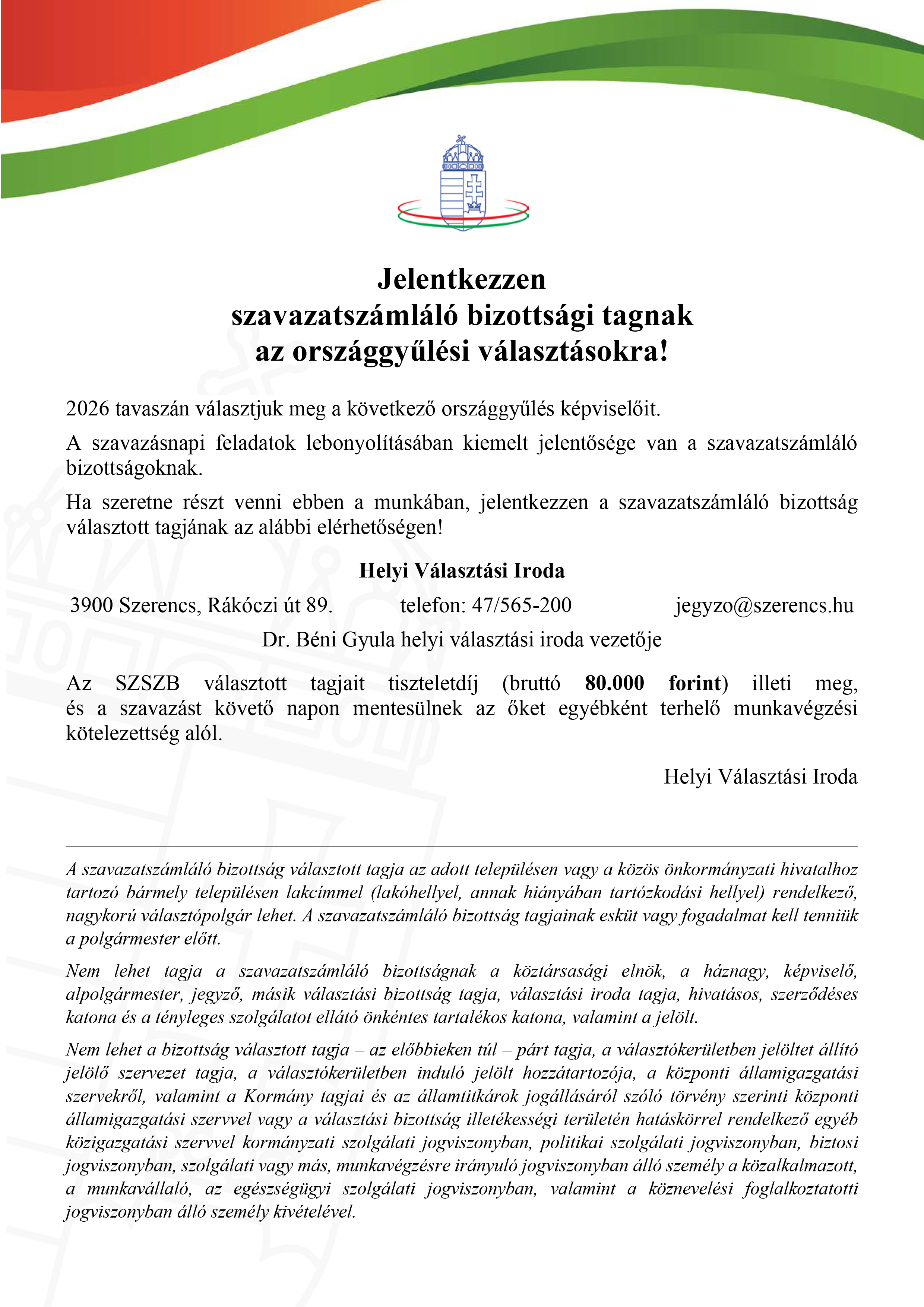Hivatali helyiségének címe: 3900 Szerencs, Rákóczi út 89.